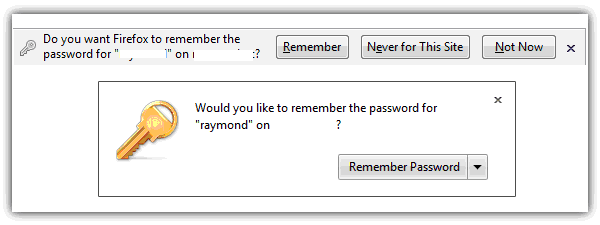 For Firefox 3, all you need to do is edit the nsLoginManagerPrompter.js file with a text editor preferably Notepad++ located in C:\Program Files\Mozilla Firefox\componenets\ folder. Search for the showSaveLoginNotification : function and replace the whole code that is highlighted in yellow…